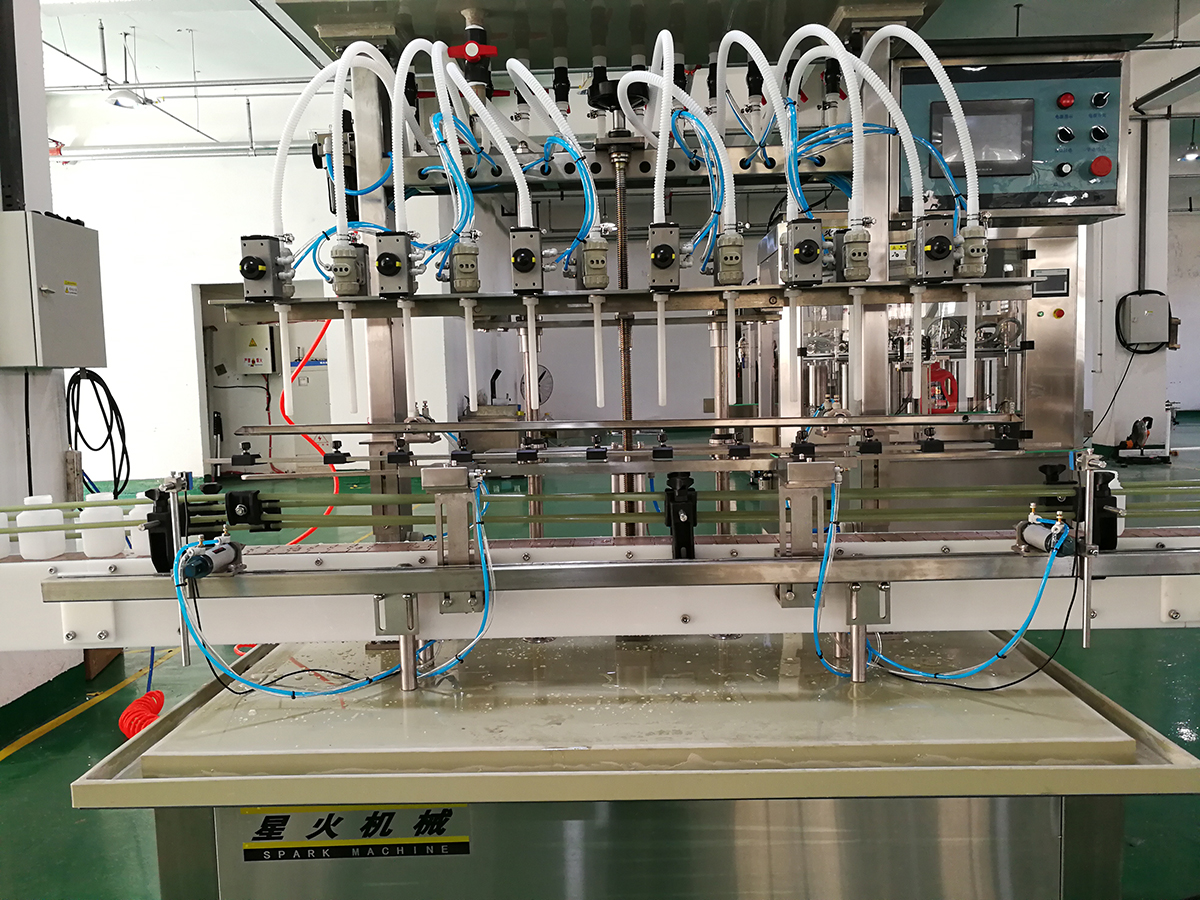 該機是一種由微電腦(PLC)可編程控制,光電傳感,氣動執(zhí)行于一體的高新技術(shù)灌裝設(shè)備。本機專用于日化類,適用于84消毒液、潔廁劑、去污劑、鹽酸、腐蝕性化工產(chǎn)品等含有酸、堿、鹽等化工類液體的灌裝。