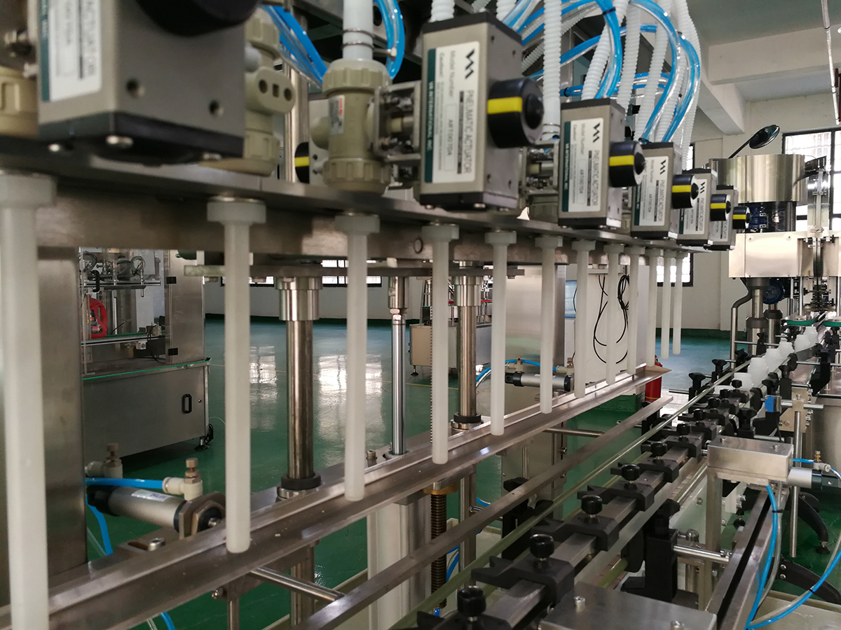 灌裝采用固定流道參數(shù),控制灌裝時間來實現(xiàn)不同計量的灌裝。計量精確度控制在±1%誤差范圍,減少不必要的物料損耗,提高用戶經(jīng)濟效益。每個灌裝頭的計量可以進行單獨調(diào)整,以實現(xiàn)灌裝計量的一致。本機設(shè)定了進瓶技術(shù)程序、無瓶、計數(shù)不到位不灌裝,只有當(dāng)計數(shù)器記錄到的瓶數(shù)與設(shè)定的灌裝瓶數(shù)一致時才開始灌裝。灌裝量的多少,可以進行初調(diào)到所需灌裝量時,再進行微調(diào),即可得到理想的灌裝計量精度。