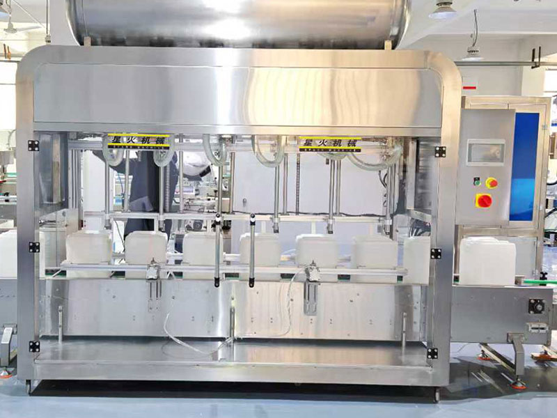在精細(xì)化工、涂料、潤滑油、油漆、防腐劑、除銹劑等帶有一定腐蝕性物料的灌裝工作當(dāng)中,化工原料稱重灌裝機(jī)有著極高的使用率,25升桶裝液體灌裝機(jī)以質(zhì)量為核心的定量方式,完成了高強(qiáng)度、耐腐蝕物料的全自動(dòng)化操作,化工原料稱重灌裝機(jī)通過高精度稱重傳感裝置能夠?qū)?0-25升的化工原料提供精準(zhǔn)定量灌裝工作。