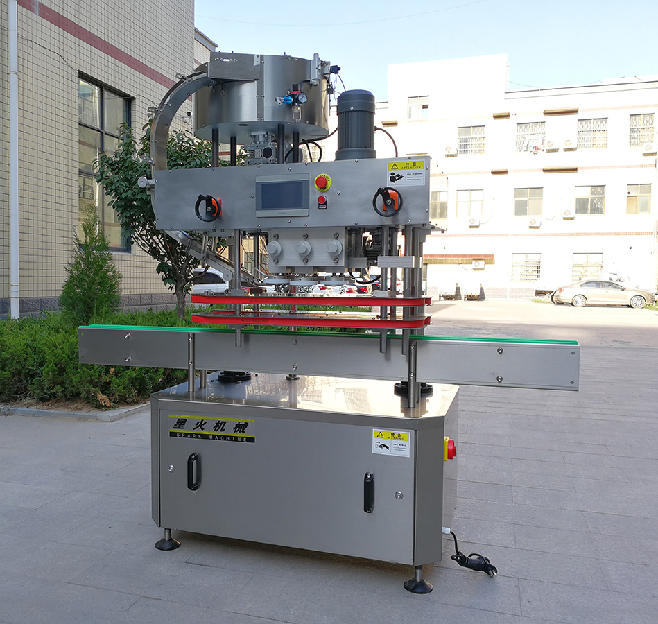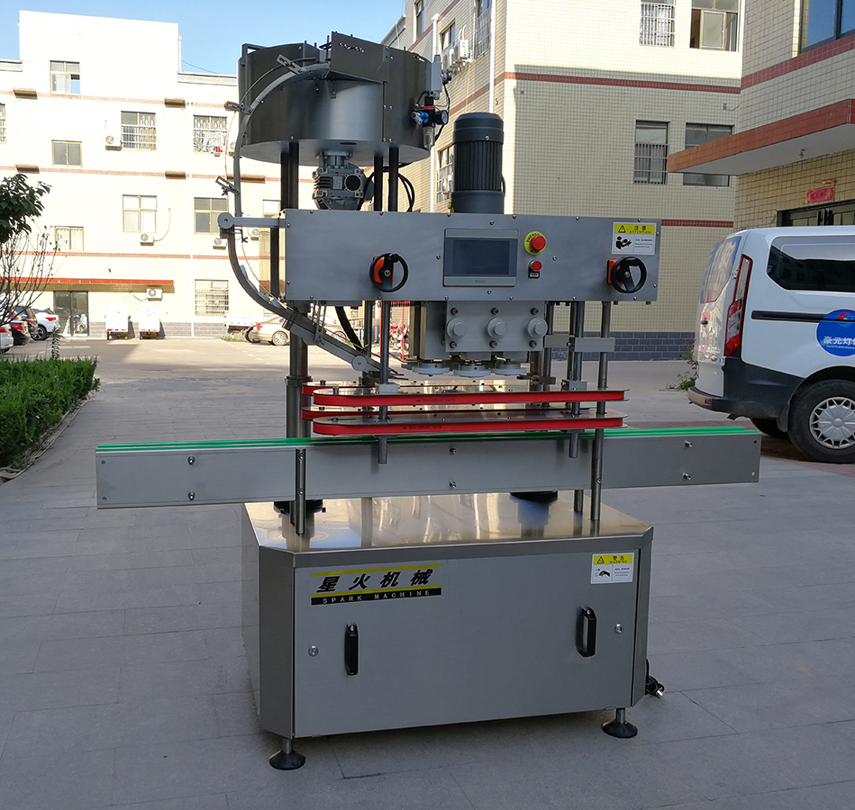 XH-160B型全自動(dòng)直列式壓蓋機(jī)是我公司很新改進(jìn)的一種新型壓蓋機(jī)。四臺(tái)調(diào)速電機(jī)分別用于供蓋、夾瓶、傳送、壓蓋,機(jī)器自動(dòng)化程度高,穩(wěn)定性好,調(diào)節(jié)方便、更換瓶型或蓋時(shí)無需備件,只需作調(diào)整即可完成(如配上蓋機(jī),可進(jìn)行自動(dòng)上蓋)。外觀美觀大方、靈巧、壓蓋速度快,合格率高,可適用于食品、醫(yī)用、化工、飲料等行業(yè)的不同瓶形的旋蓋。