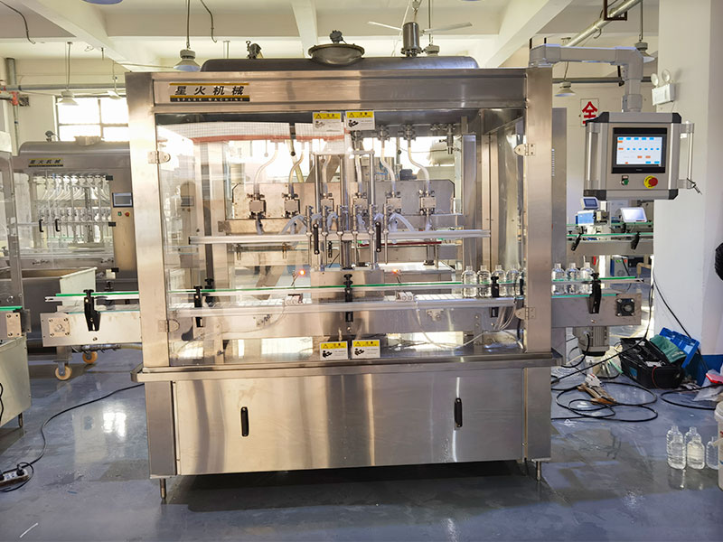 全自動數(shù)控液體灌裝機實現(xiàn)了多個灌裝頭同時灌裝,提高生產(chǎn)效率,降低人工成本的工作模式,它被廣泛用于:食品、建筑、醫(yī)藥、日化、農(nóng)業(yè)等多個行業(yè)內(nèi)的液體物料灌裝,全自動數(shù)控液體灌裝機為高度智能化的灌裝設備,其核心技術(shù)采用數(shù)控伺服系統(tǒng)、多頭同步定量、自動理瓶、平穩(wěn)輸送、穩(wěn)定灌裝的操作功能,面對多元化的市場條件,全自動數(shù)控液體灌裝機可與洗瓶機、吹瓶機、貼標機、旋蓋機、裝箱機、碼垛機等設備形成聯(lián)動生產(chǎn)線的工作模式。
